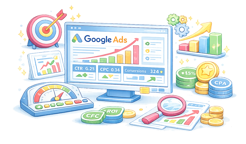 Micro-texte de synthèse : Des campagnes Google Ads pilotées, performantes et rentables.